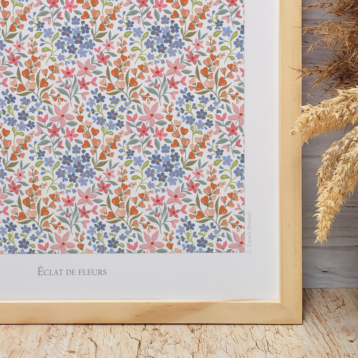 Je vous propose cartes et affiches aux motifs floraux, des affiches Cherche et Trouve décoratives et ludiques pour les enfants, ainsi que des affiches personnalisables aux prénoms des membres de la famille inscrits dans les tiges de fleurs ou dans les branches d’arbre.