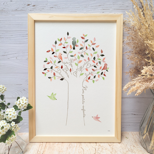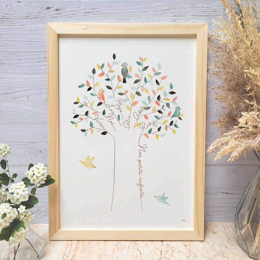 Affiche famille personnalisable · "L'arbre aux oiseaux" · Naturel