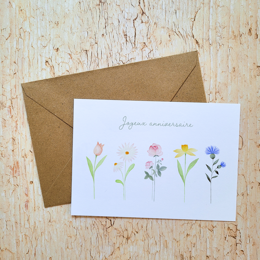 Carte de vœux · "Les fleurs de Flo" · Joyeux anniversaire