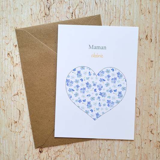 Carte de vœux · "Liberty myosotis" · Maman chérie