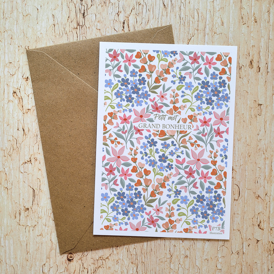 Carte de vœux · "Eclat de fleurs" · Petit mot grand bonheur