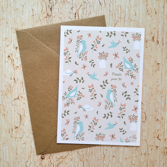 Carte de vœux · "Instants au jardin" · Pensée pour toi