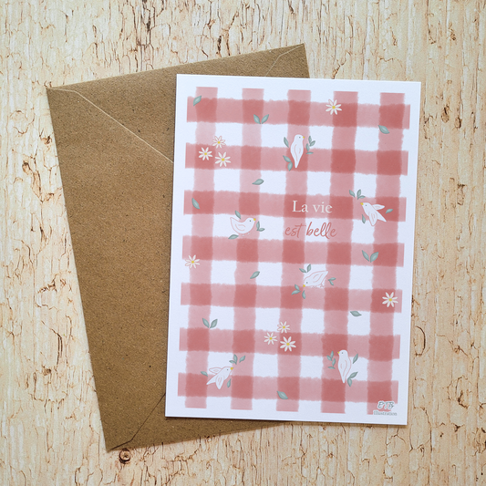 Carte de vœux · "Vichy fleuri" · La vie est belle