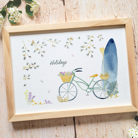 Affiche aquarelle · "L'arbre aux écureuils" · Fleurs bleues