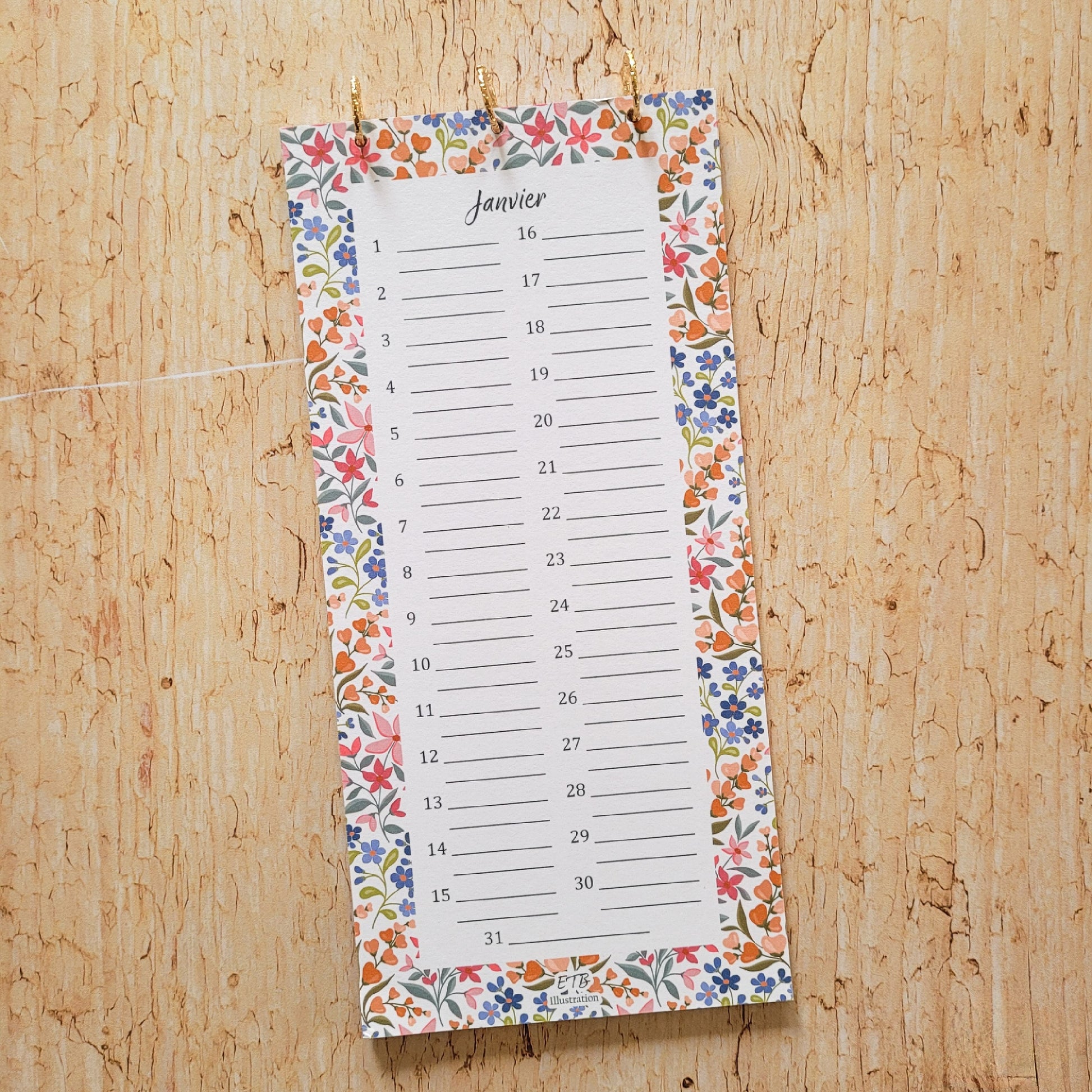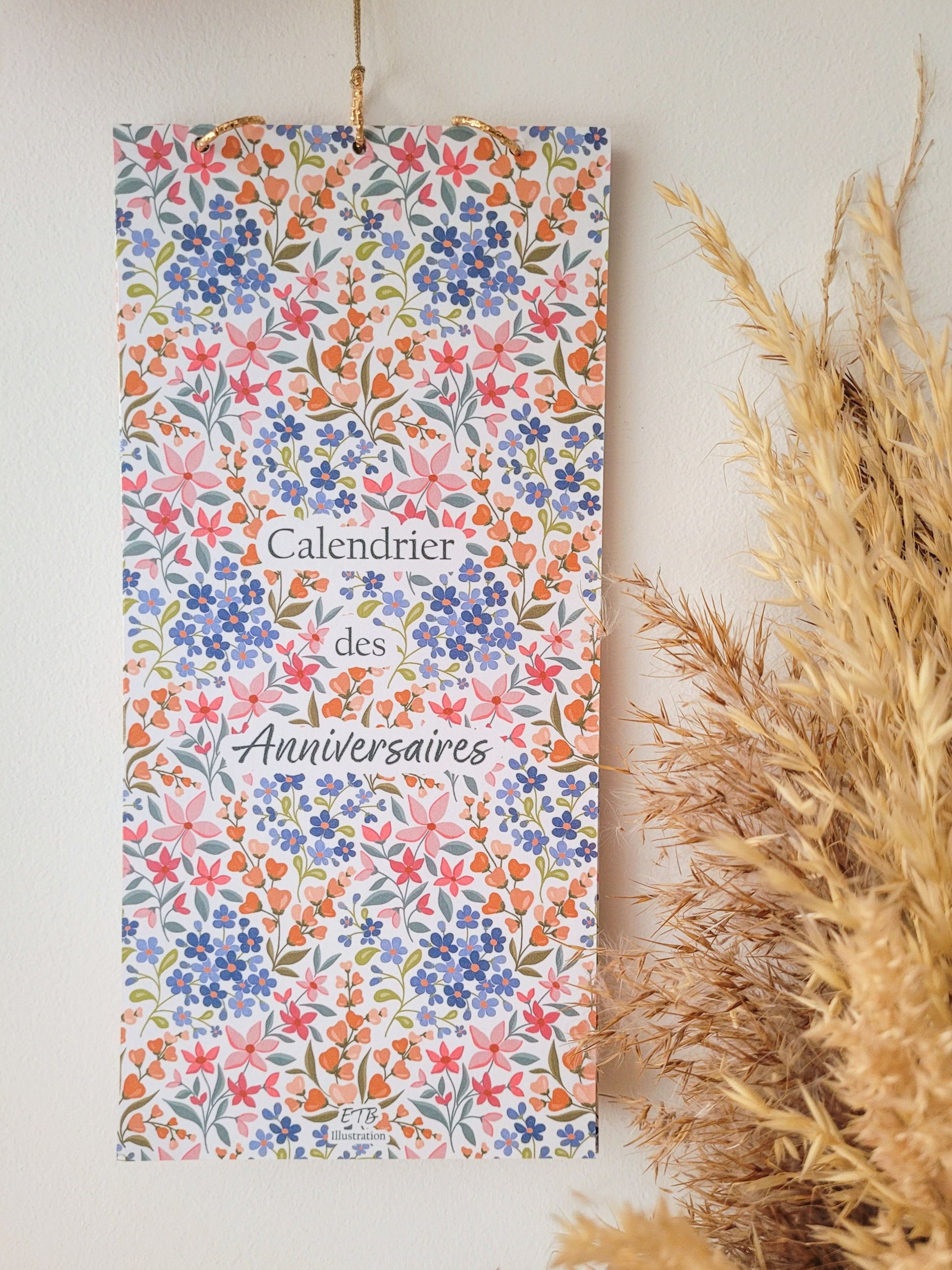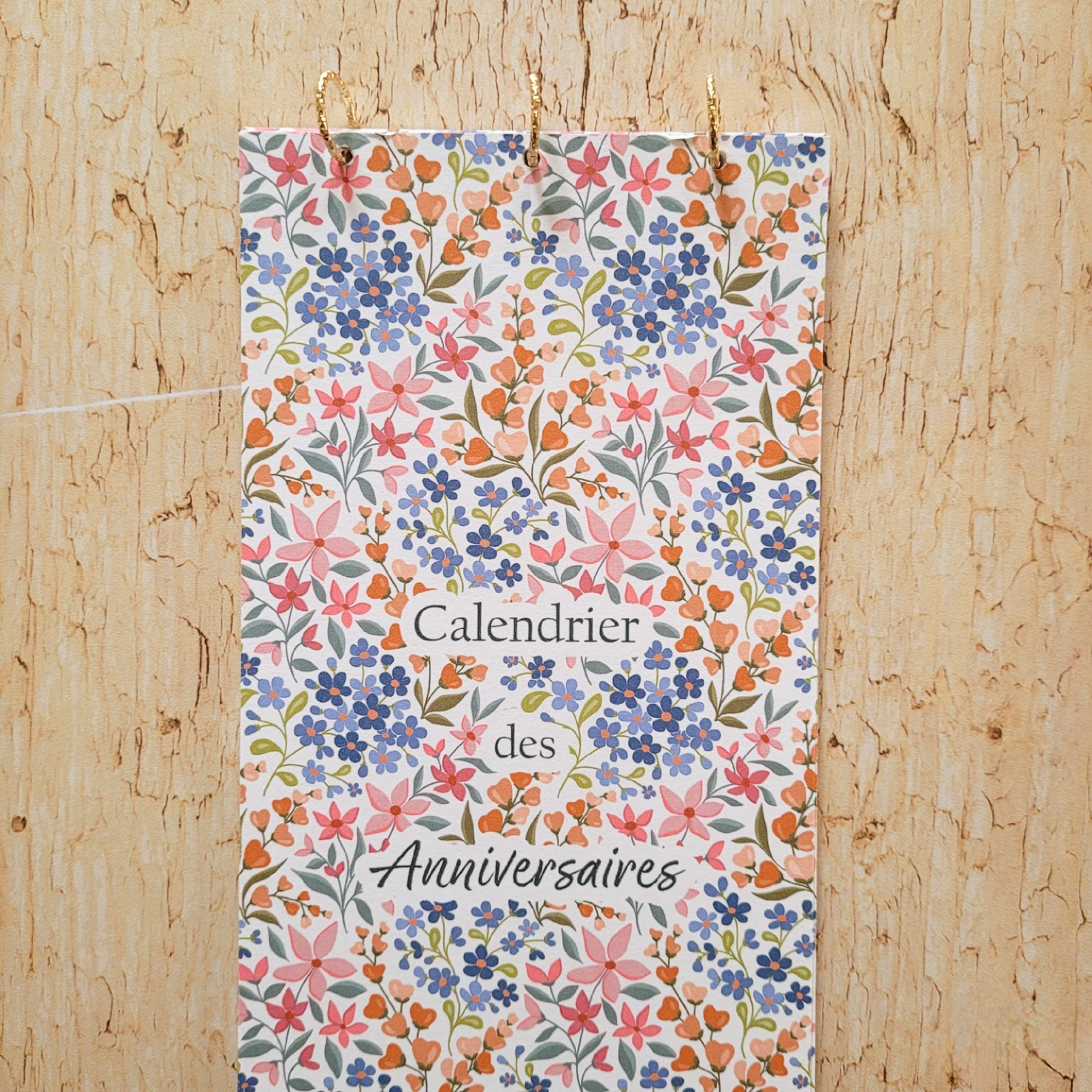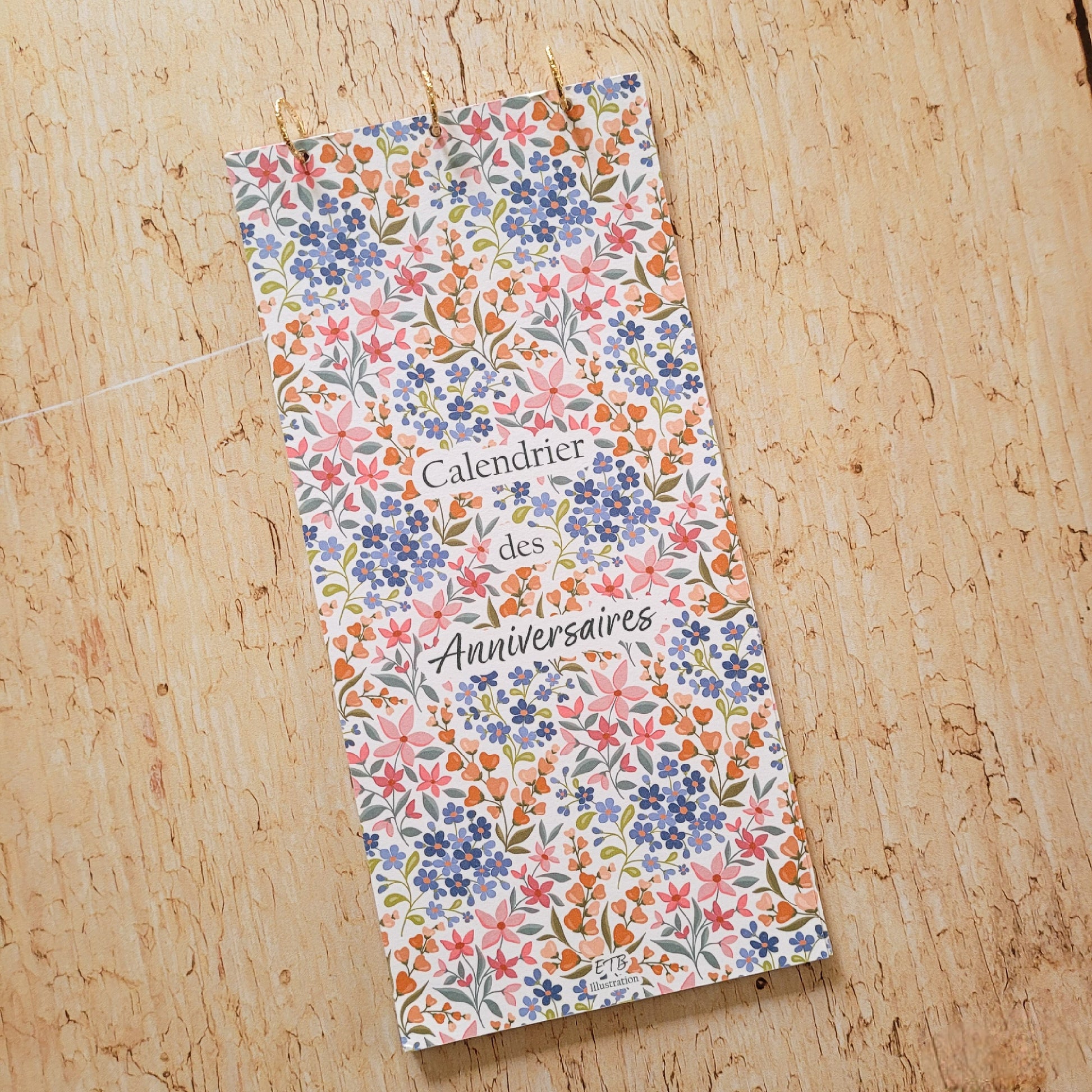 Calendrier perpétuel des anniversaires, à accrocher, motif fleuri.