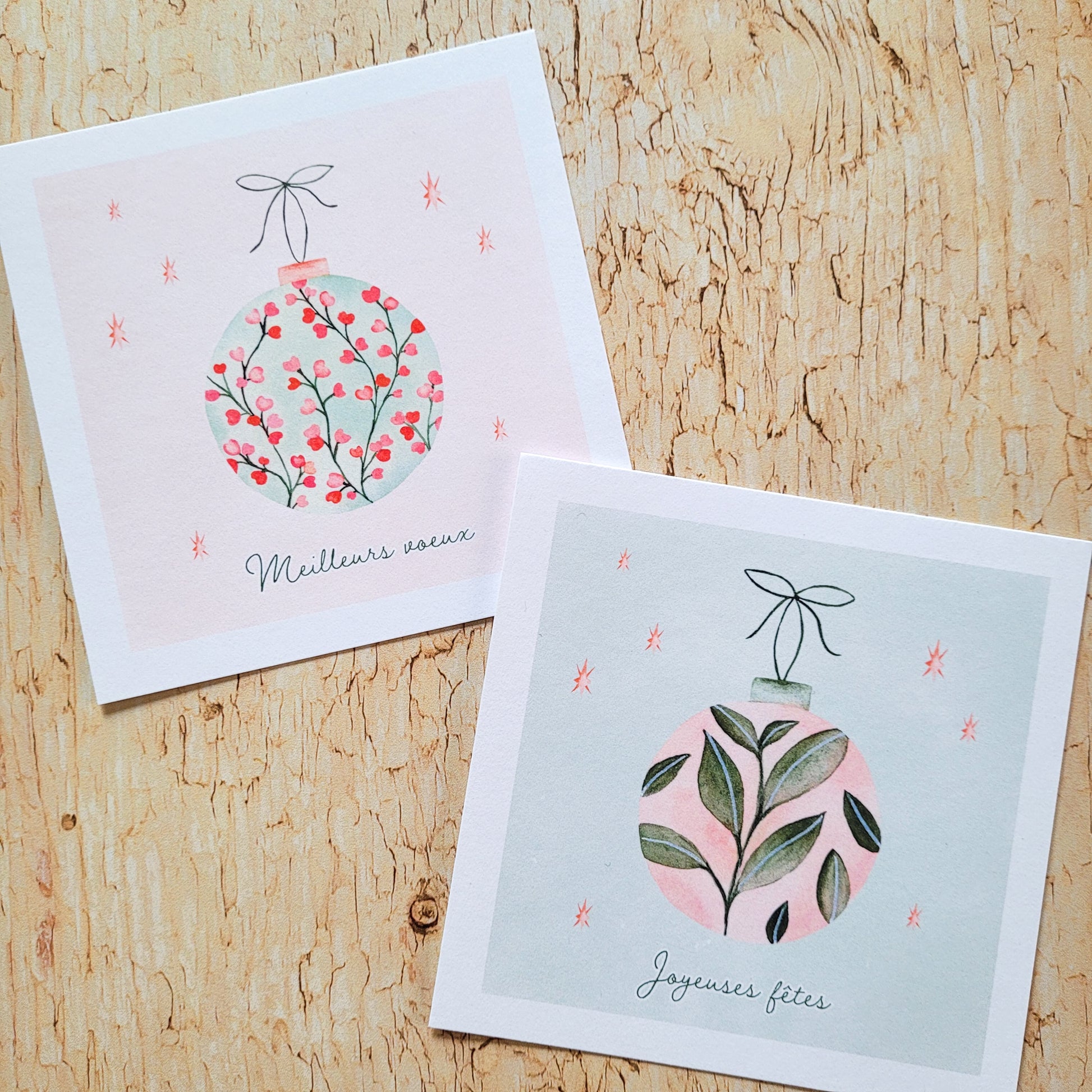 Lot de 2 cartes de vœux "Joyeuses fêtes" et "Meilleurs vœux".