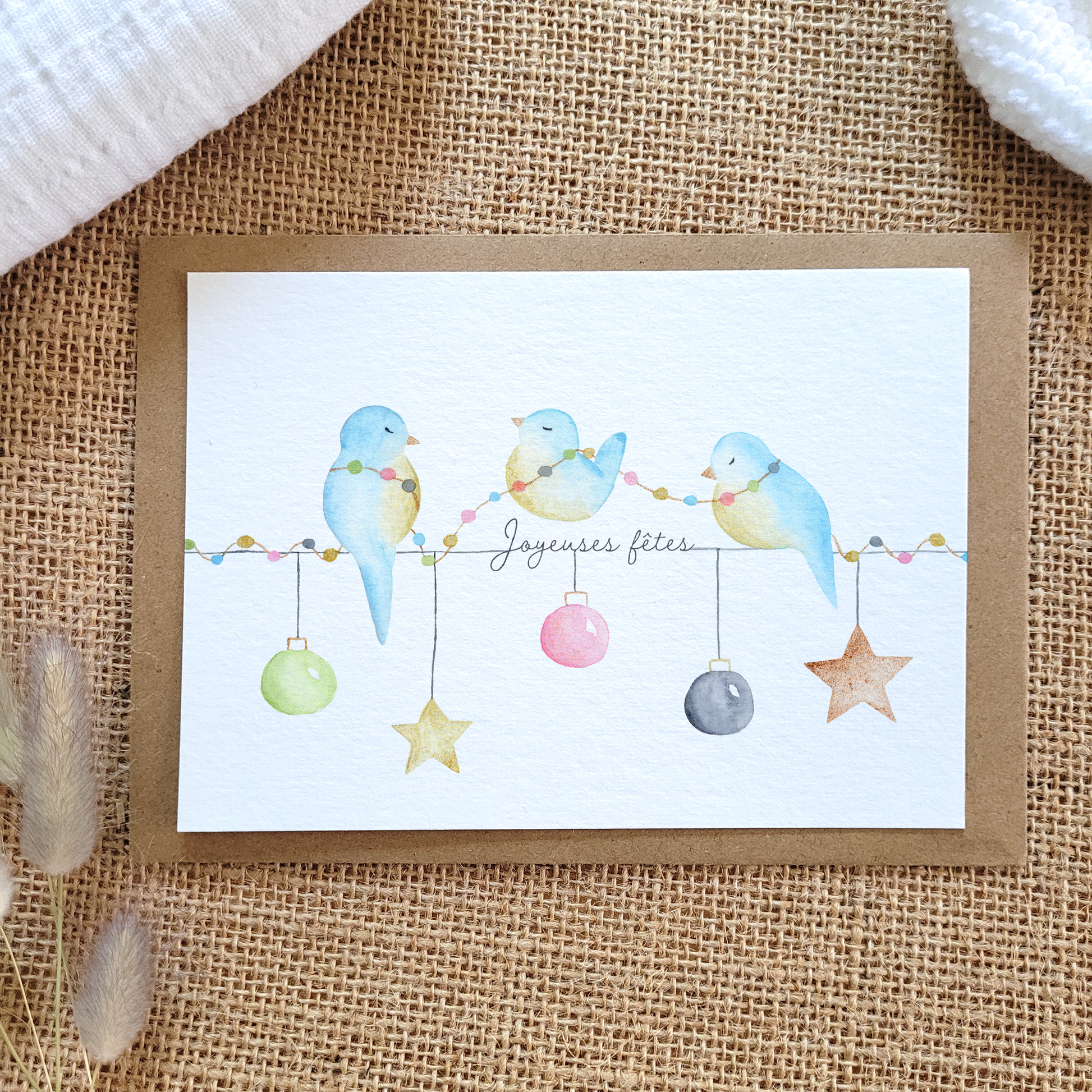 Cartes de voeux oiseaux "Joyeuses fêtes".